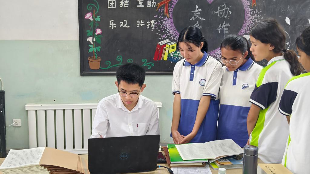 同樣來自山東的小伙兒蓋彥吉對(duì)支教事業(yè)抱有激情。2024年夏天,從中國農(nóng)業(yè)大學(xué)本科畢業(yè)后,他參加了學(xué)校的西部計(jì)劃研究生支教團(tuán),來到莎車縣第三中學(xué)任教。在教學(xué)工作中,蓋彥吉發(fā)現(xiàn),青年教師的天然親和力,能更好激發(fā)學(xué)生的求知欲。
