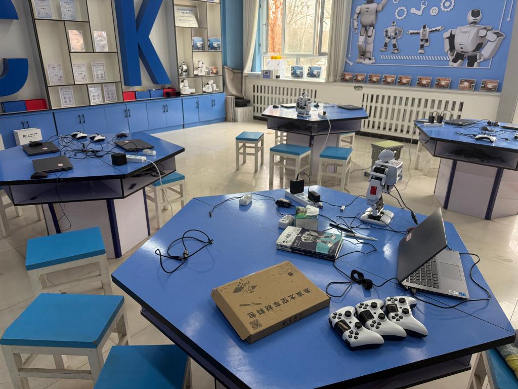 庫車市第三中學(xué)的人工智能機(jī)器人實(shí)驗(yàn)室。新華社記者 曹奕博 攝