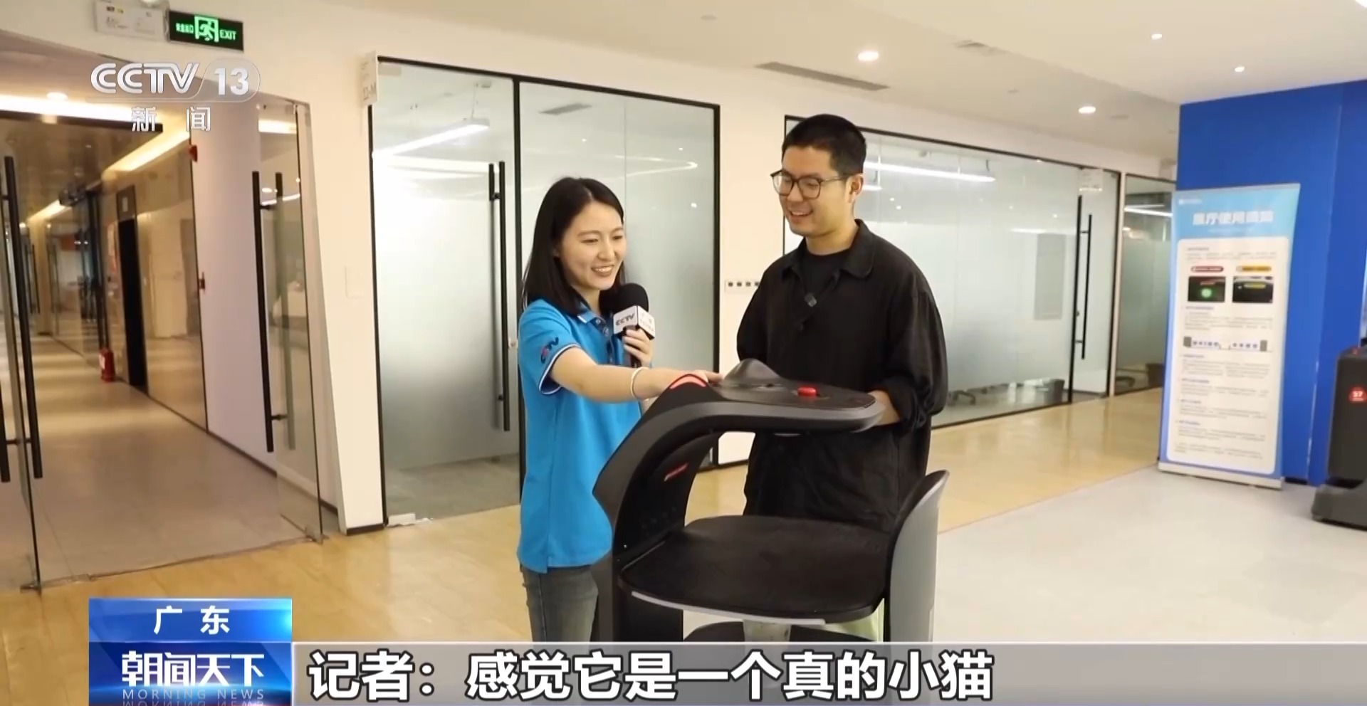 深圳普渡科技首席技術官 郭璁:摸耳朵,它會有一些不同的表情會出現(xiàn)。能給客戶提供兩種價值,第一種是功能價值,它能夠真正幫客戶解決一些問題;第二是情緒價值,消費者看到這些機器人之后覺得它很有趣。