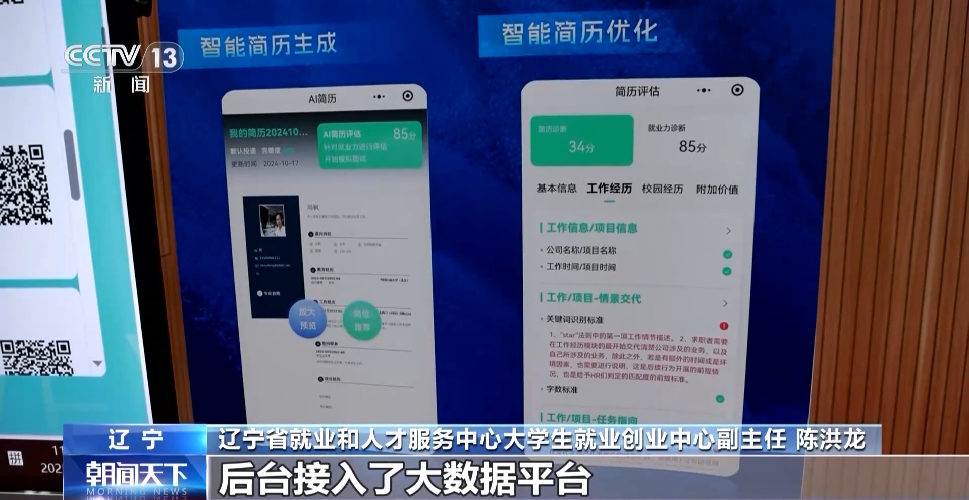 遼寧省就業(yè)和人才服務(wù)中心大學(xué)生就業(yè)創(chuàng)業(yè)中心副主任 陳洪龍:后臺(tái)接入了大數(shù)據(jù)平臺(tái),這里面有我們的職業(yè)指導(dǎo)師和人力資源的指導(dǎo)數(shù)據(jù)大模型,優(yōu)化之后孩子們成功的概率會(huì)大大提升。