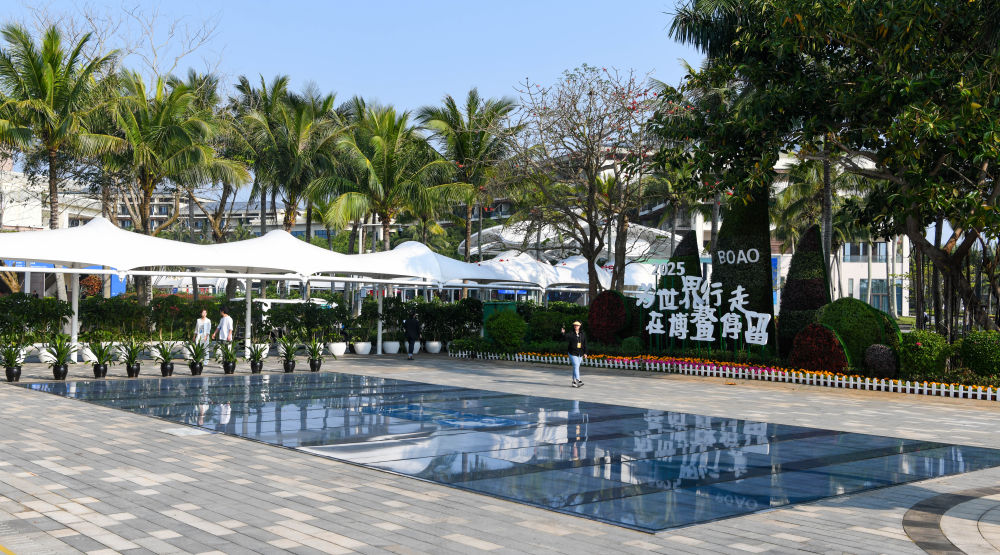 這是3月25日拍攝的博鰲零碳示范區(qū)循環(huán)花園內的景觀。