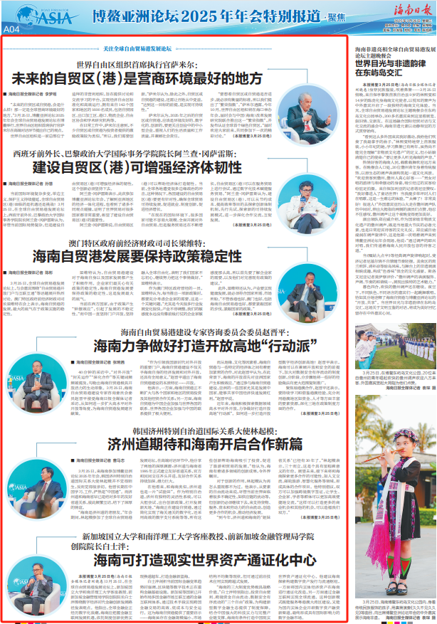 3月25日下午,全球自由貿易港發(fā)展論壇在博鰲舉行。海南日報全媒體記者 王程龍 攝