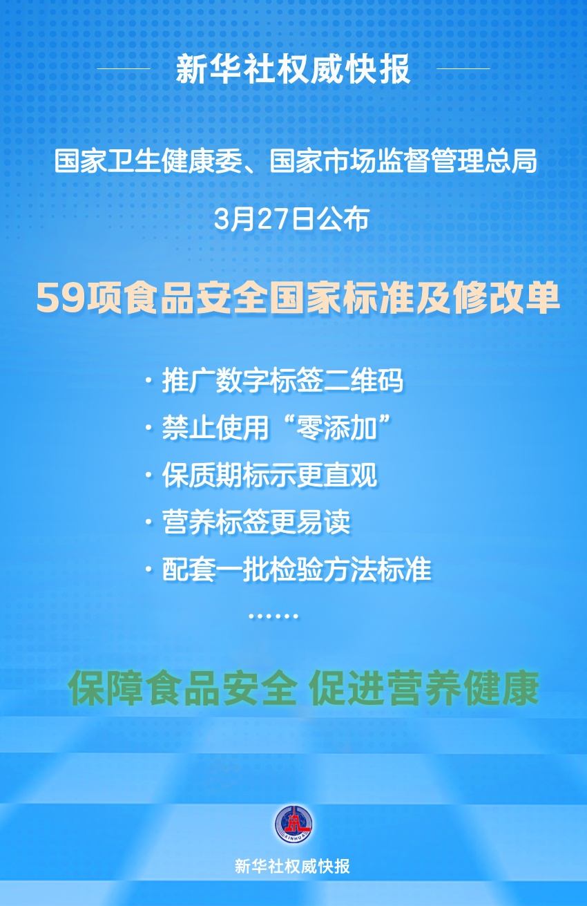 國家衛(wèi)生健康委、國家市場監(jiān)督管理總局3月27日公布了50項食品安全國家標(biāo)準(zhǔn)和9項標(biāo)準(zhǔn)修改單,這些標(biāo)準(zhǔn)與公眾日常消費(fèi)的乳制品、肉制品、特殊醫(yī)學(xué)用途嬰兒配方食品、嬰幼兒輔助食品、食品添加劑、消毒劑等密切相關(guān)。