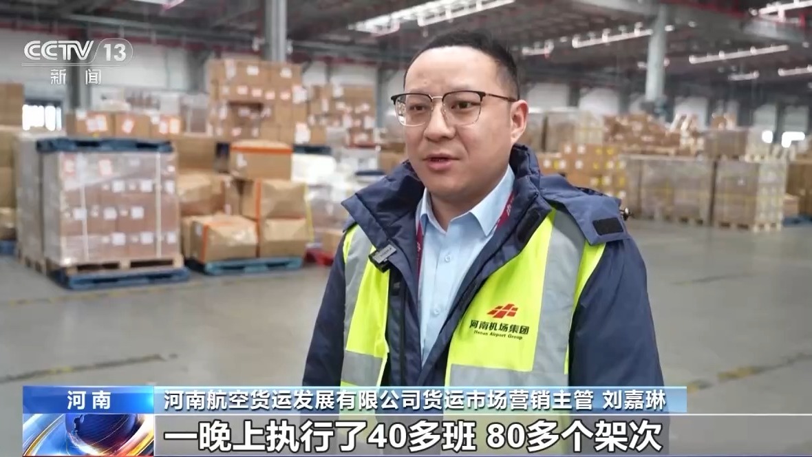 河南航空貨運(yùn)發(fā)展有限公司貨運(yùn)市場營銷主管 劉嘉琳:最繁忙的時(shí)候,一晚上執(zhí)行了40多班,80多個(gè)架次。每一個(gè)環(huán)節(jié)、每個(gè)時(shí)間節(jié)點(diǎn)我們都有監(jiān)控,哪個(gè)節(jié)點(diǎn)出現(xiàn)問題了,耽擱的時(shí)間比較長了,后臺(tái)對現(xiàn)場進(jìn)行提醒。高峰期加派人員,大大提高了作業(yè)效率。