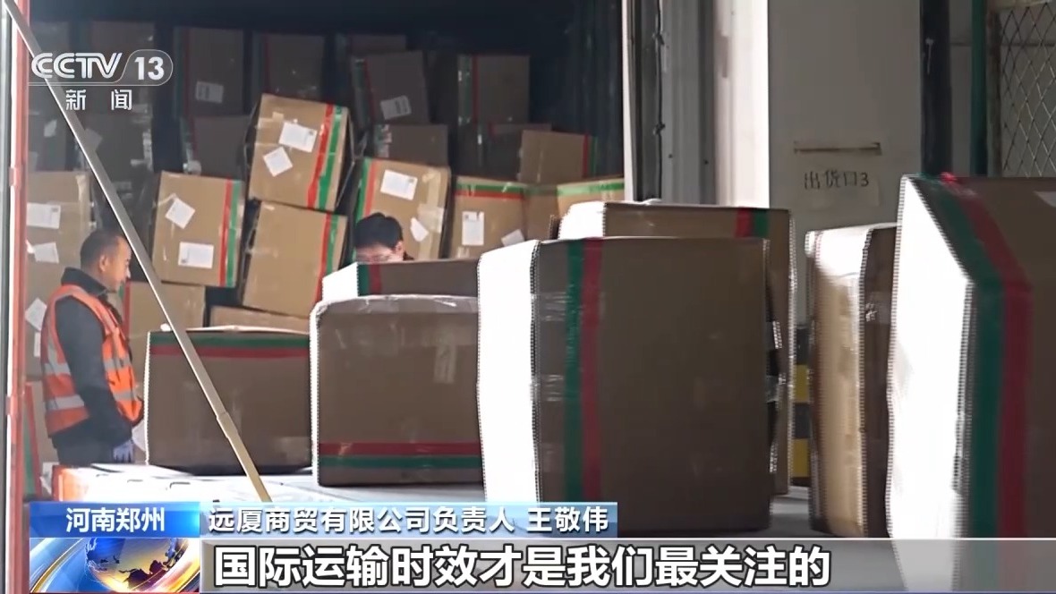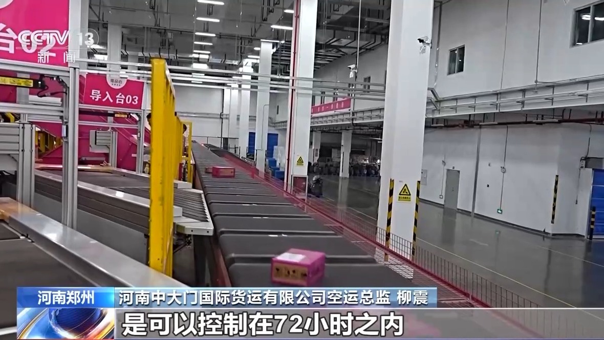 河南中大門國際貨運(yùn)有限公司空運(yùn)總監(jiān) 柳震:從國內(nèi)工廠提貨,到整個(gè)航班在境外口岸落地,我們整體的時(shí)效是可以控制在72小時(shí)之內(nèi),完全符合高效運(yùn)轉(zhuǎn)的時(shí)效要求。