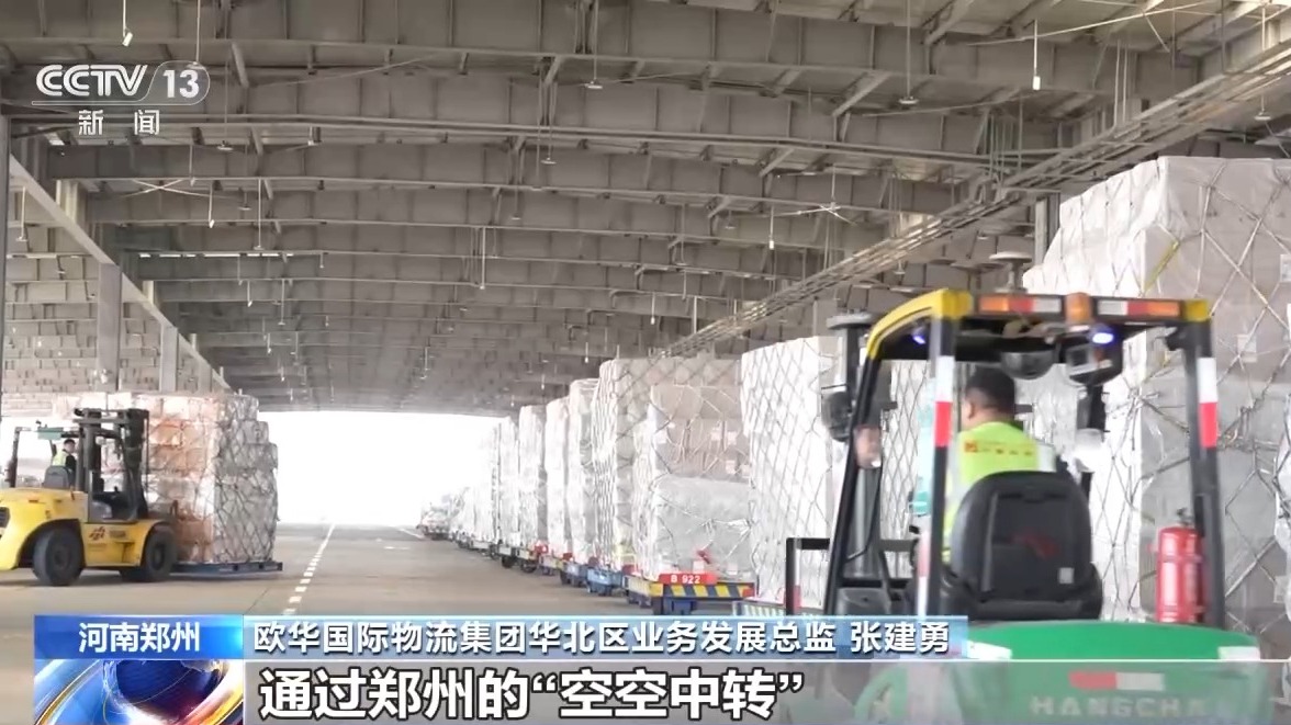 歐華國際物流集團(tuán)華北區(qū)業(yè)務(wù)發(fā)展總監(jiān) 張建勇:在當(dāng)?shù)乜者\(yùn)市場運(yùn)力不足的時(shí)候,貨物就會(huì)有排隊(duì)的現(xiàn)象。通過鄭州的“空空中轉(zhuǎn)”,我們頭程和二程都是直飛的航班,既能提高時(shí)效,又能把成本降低20%到30%。