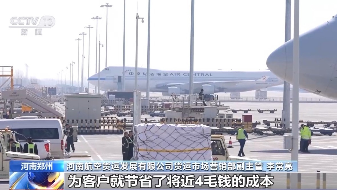 河南航空貨運(yùn)發(fā)展有限公司貨運(yùn)市場營銷部 李常亮:時(shí)效能夠提升3到6個(gè)小時(shí),而且我們現(xiàn)在對中轉(zhuǎn)貨實(shí)行一次性收費(fèi),算下來相當(dāng)于我們一公斤為客戶就節(jié)省了將近4毛錢的成本。