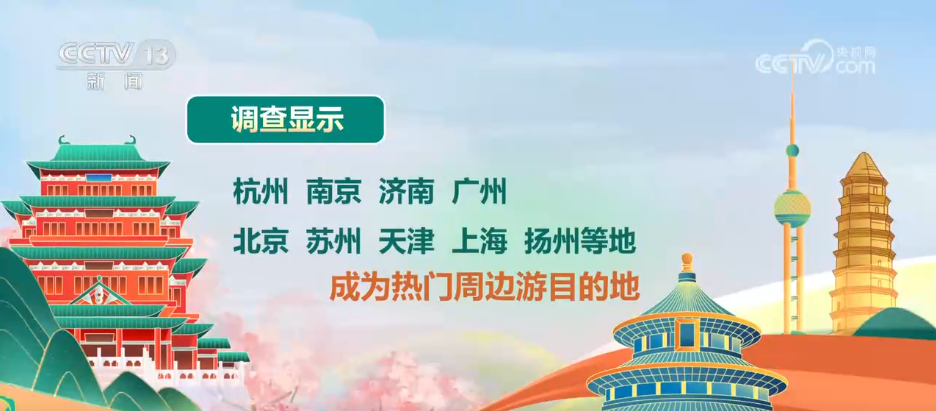 調查顯示,90%的游客出游半徑在500公里以內,44%的游客會選擇自駕出游,杭州、南京、濟南、廣州、北京、蘇州、天津、上海、揚州等地成為熱門的周邊游目的地。