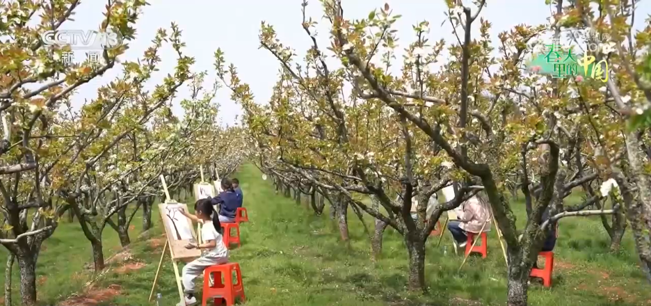 這片生機盎然的梨園不僅成為市民踏青的熱門地點,還吸引了附近的師生前來寫生。他們用畫筆記錄下梨花的淡雅與生機,將春日美景定格于畫卷之上。