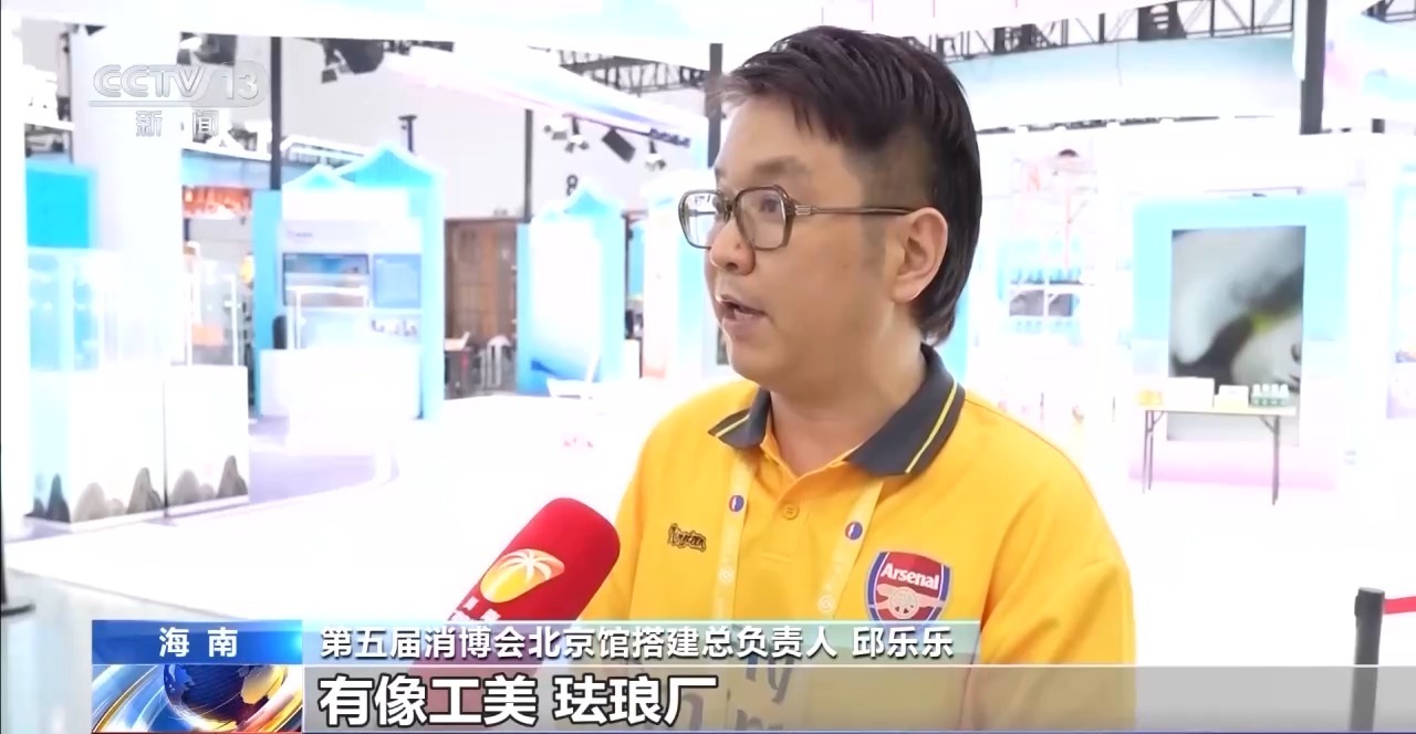 第五屆消博會北京館搭建總負(fù)責(zé)人 邱樂樂:這次北京也帶來25家企業(yè),有像工美、琺瑯廠、菜市口百貨這些老企業(yè),也有新媒體的企業(yè)。