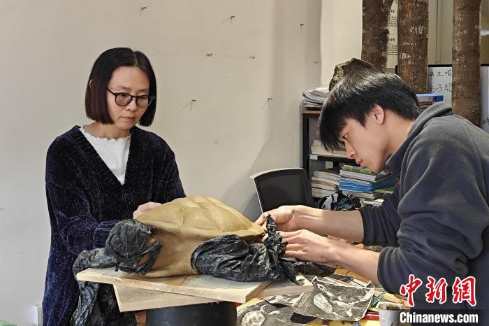 4月1日,李詩維(左一)帶領泉州工藝美術職業(yè)學院的學生創(chuàng)作陶瓷作品?!枪跇?攝