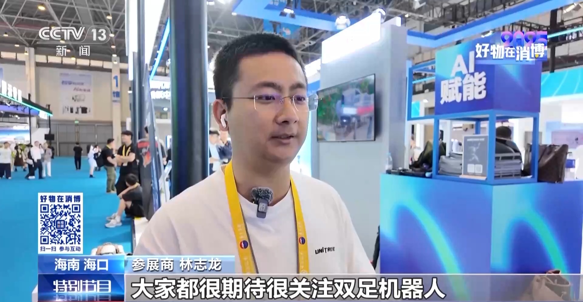 參展商 林志龍:大家都很期待很關(guān)注雙足機(jī)器人,這次來消博會,也是想更加廣泛聽取消費(fèi)者對于產(chǎn)品的包括場景需求應(yīng)用的呼聲,然后可以針對性地再去做之后的產(chǎn)品的設(shè)計(jì)和規(guī)劃。