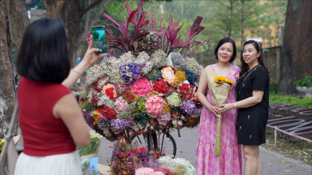 越南首都河內(nèi)是一座愛花的城市,以自行車或摩托車為貨架的“鮮花巴士”遍布大街小巷,成為這座城市獨(dú)特的風(fēng)景線。