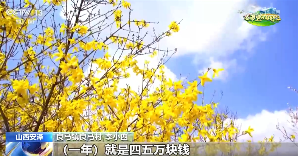 良馬鎮(zhèn)良馬村李小四稱:“春天連翹葉子摘了以后可以賣成連翹茶,到了果子成熟以后,也就是夏季,我們可以摘果子賣掉。我們家4口人一年就是四五萬元,人均收入可以達(dá)到萬元左右。”