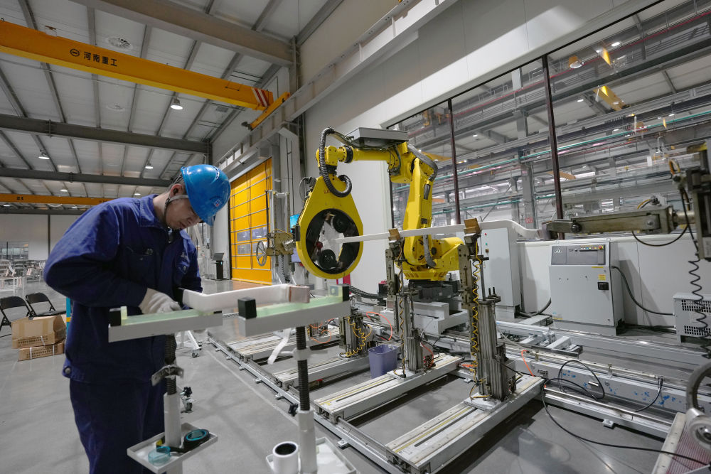 2月26日,在哈爾濱電機廠有限責(zé)任公司線圈分廠智能制造車間,工人與智能設(shè)備在進行協(xié)同加工生產(chǎn)作業(yè)。新華社記者 王松 攝