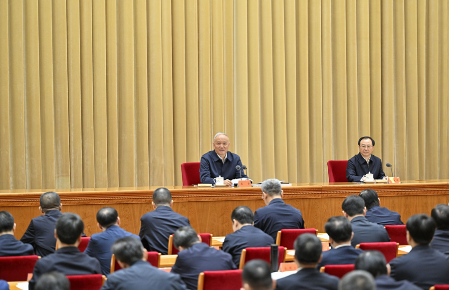 4月24日,全國(guó)黨委和政府秘書(shū)長(zhǎng)會(huì)議在北京召開(kāi)。中共中央政治局常委、中央辦公廳主任蔡奇出席會(huì)議并講話。新華社記者 殷博古 攝
