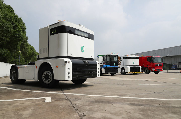 2023年9月26日,一輛西井科技的無人駕駛重卡Q-Truck(前)在位于上海的無人駕駛商用車聯(lián)合實(shí)驗(yàn)室場(chǎng)地上進(jìn)行動(dòng)態(tài)測(cè)試。新華社記者 方喆 攝