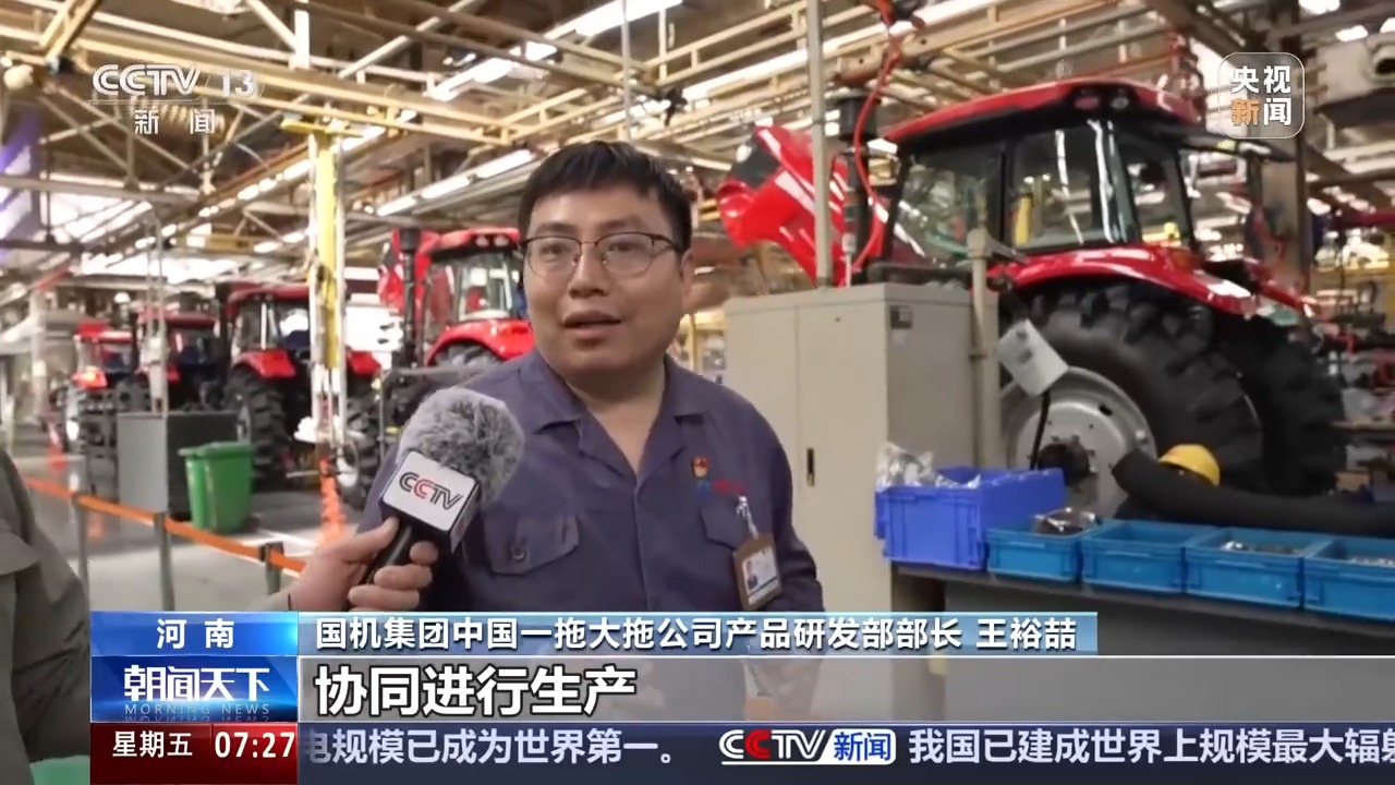 國機集團中國一拖大拖公司產(chǎn)品研發(fā)部部長 王裕喆:協(xié)同進行生產(chǎn),中間是通過智能化信息系統(tǒng),來進行一個高效的協(xié)同和串聯(lián),也是通過這個信息系統(tǒng),實際上消除了各生產(chǎn)線之間的獨鏈和孤島。
