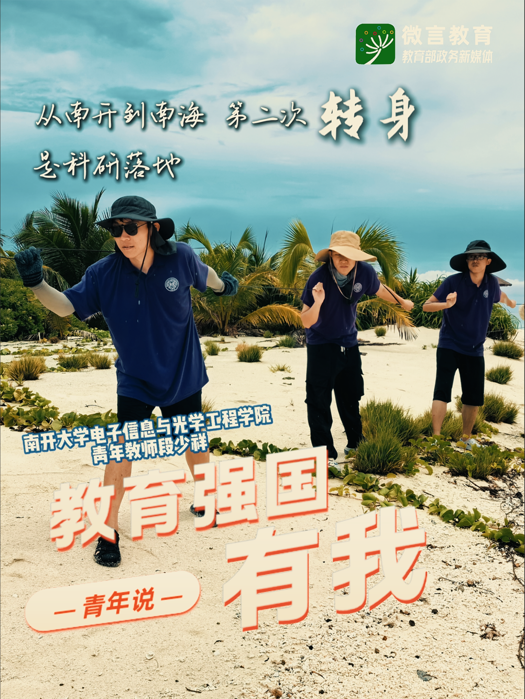 習近平總書記強調(diào),全面推進強國建設、民族復興偉業(yè),正是年輕一代展示才華、大顯身手的好時候。教育強國建設,青年何為?五四青年節(jié)之際,教育部政務新媒體啟動“教育強國,有我!”網(wǎng)絡主題宣傳活動,推出“青年說(奮進篇)”系列,展現(xiàn)青年師生以青春之我、奮斗之我投身教育強國建設的生動實踐。今天,跟教育小微通過1個微視頻和1組海報,來看南開大學新青年用三次“轉身”寫下的青春答案——