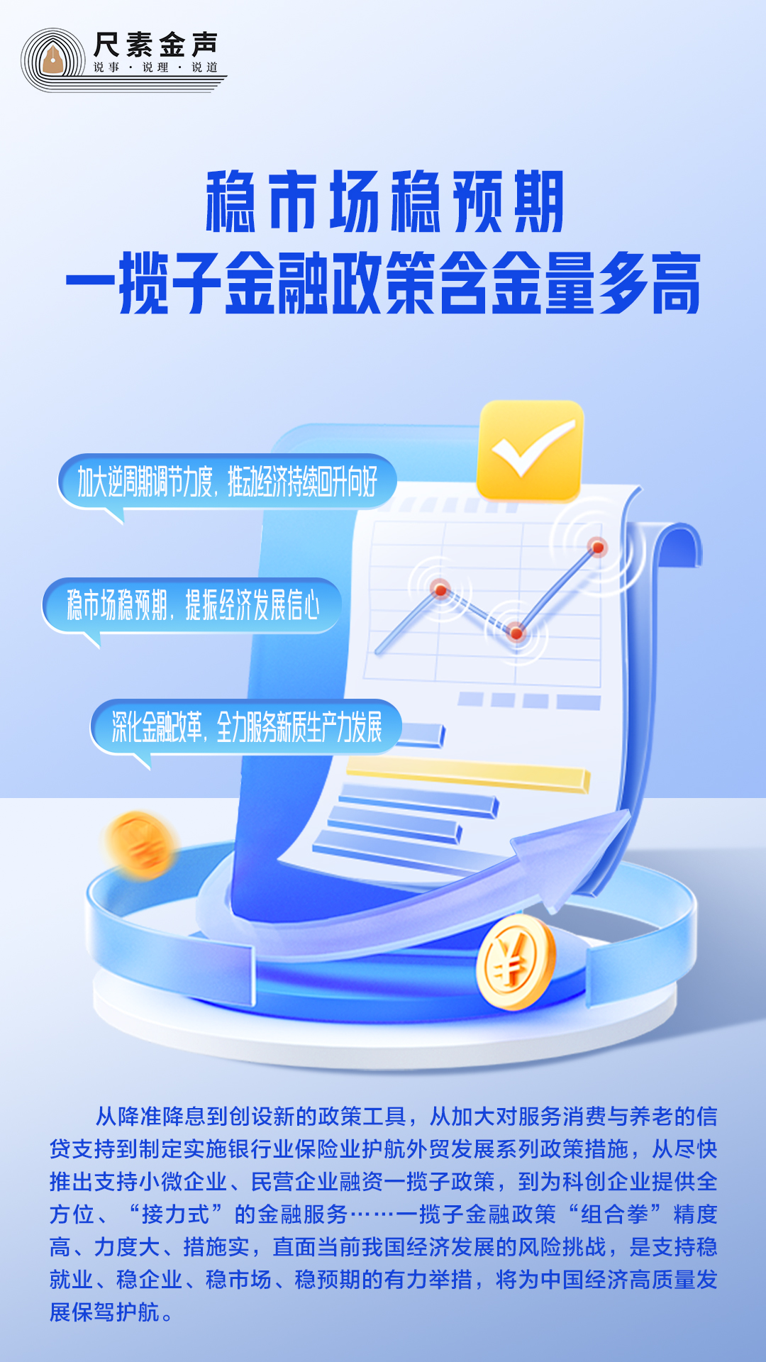 從降準(zhǔn)降息到創(chuàng)設(shè)新的政策工具,從加大對服務(wù)消費與養(yǎng)老的信貸支持到制定實施銀行業(yè)保險業(yè)護航外貿(mào)發(fā)展系列政策措施,從盡快推出支持小微企業(yè)、民營企業(yè)融資一攬子政策,到為科創(chuàng)企業(yè)提供全方位、“接力式”的金融服務(wù)……一攬子金融政策“組合拳”精度高、力度大、措施實,直面當(dāng)前我國經(jīng)濟發(fā)展的風(fēng)險挑戰(zhàn),是支持穩(wěn)就業(yè)、穩(wěn)企業(yè)、穩(wěn)市場、穩(wěn)預(yù)期的有力舉措,將為中國經(jīng)濟高質(zhì)量發(fā)展保駕護航。