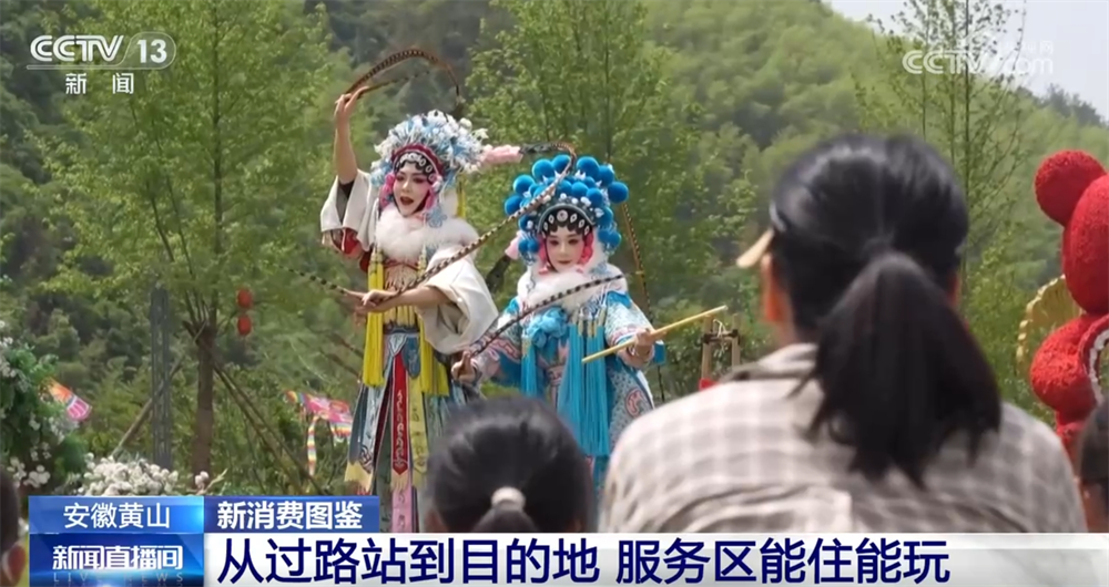 在這座位于山間的休閑廣場(chǎng)上,各種娛樂項(xiàng)目為旅客提供了多元化的休閑體驗(yàn),像徽戲表演、炒茶體驗(yàn)、竹編技藝等非遺活動(dòng)也為研學(xué)游提供了好去處。