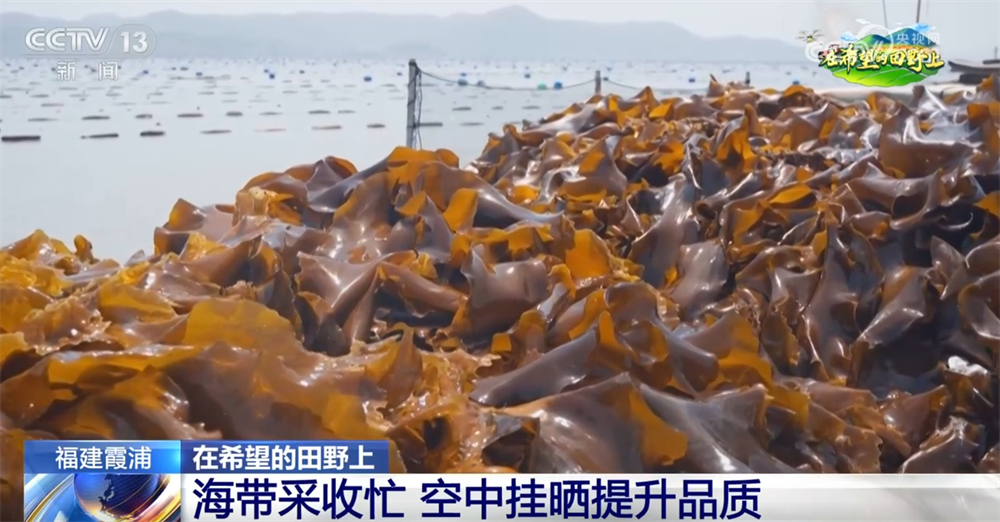 福建寧德市霞浦縣被譽為“中國海帶之鄉(xiāng)”,是我國海帶的主產(chǎn)區(qū)之一。這幾天,當?shù)氐?5萬畝海帶迎來豐收,養(yǎng)殖戶們忙著將成品海帶收獲上岸,再運送到晾曬場晾曬,形成了獨特的“空中曬場”。