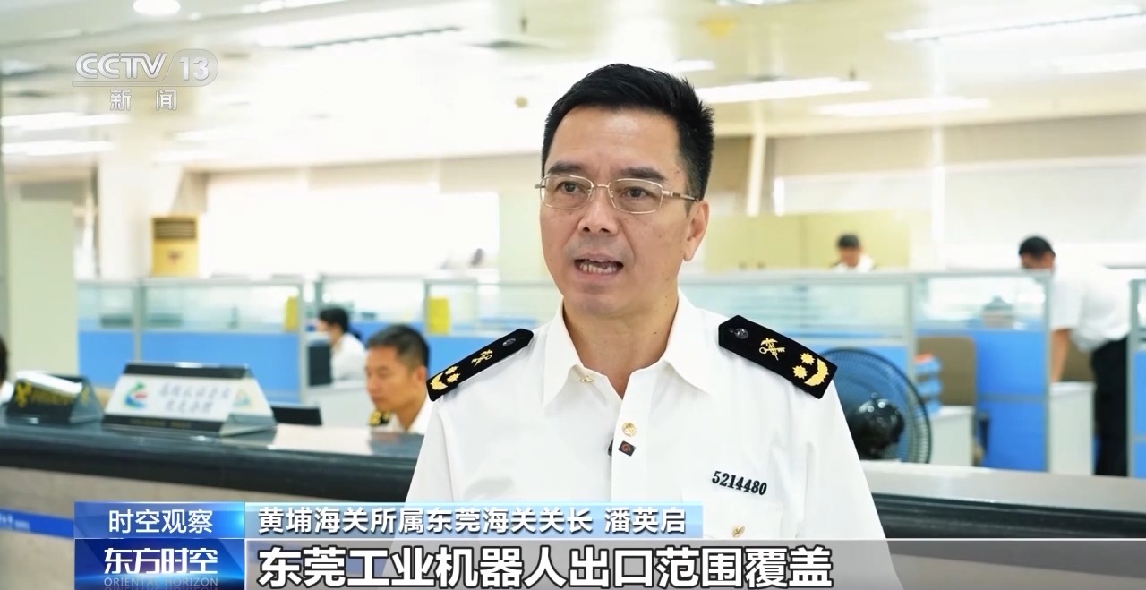 黃埔海關(guān)所屬東莞海關(guān)關(guān)長(zhǎng) 潘英啟:東莞工業(yè)機(jī)器人出口范圍覆蓋亞洲、歐洲、美洲等多個(gè)地區(qū),出口產(chǎn)品類(lèi)型豐富多樣,涵蓋焊接機(jī)器人、搬運(yùn)機(jī)器人、裝配機(jī)器人等多種工業(yè)應(yīng)用場(chǎng)景的機(jī)器人。