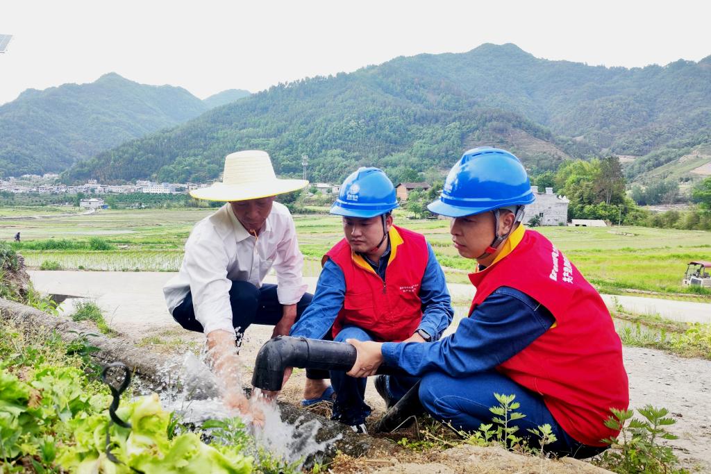 國家電網(wǎng)陜西省平利縣供電公司黨員服務隊在陜西平利縣秋河村幫助農戶調試抽水水泵。(陳思源 攝)