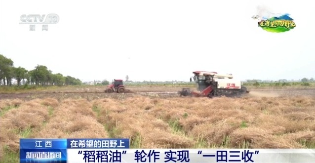 南昌新建區(qū)聯(lián)圩鎮(zhèn)稻油輪作示范基地田管員熊雪楚:油菜收完以后我們馬上就可以種水稻,一季油菜加兩季水稻,讓我們的收入比以前提高了很多。