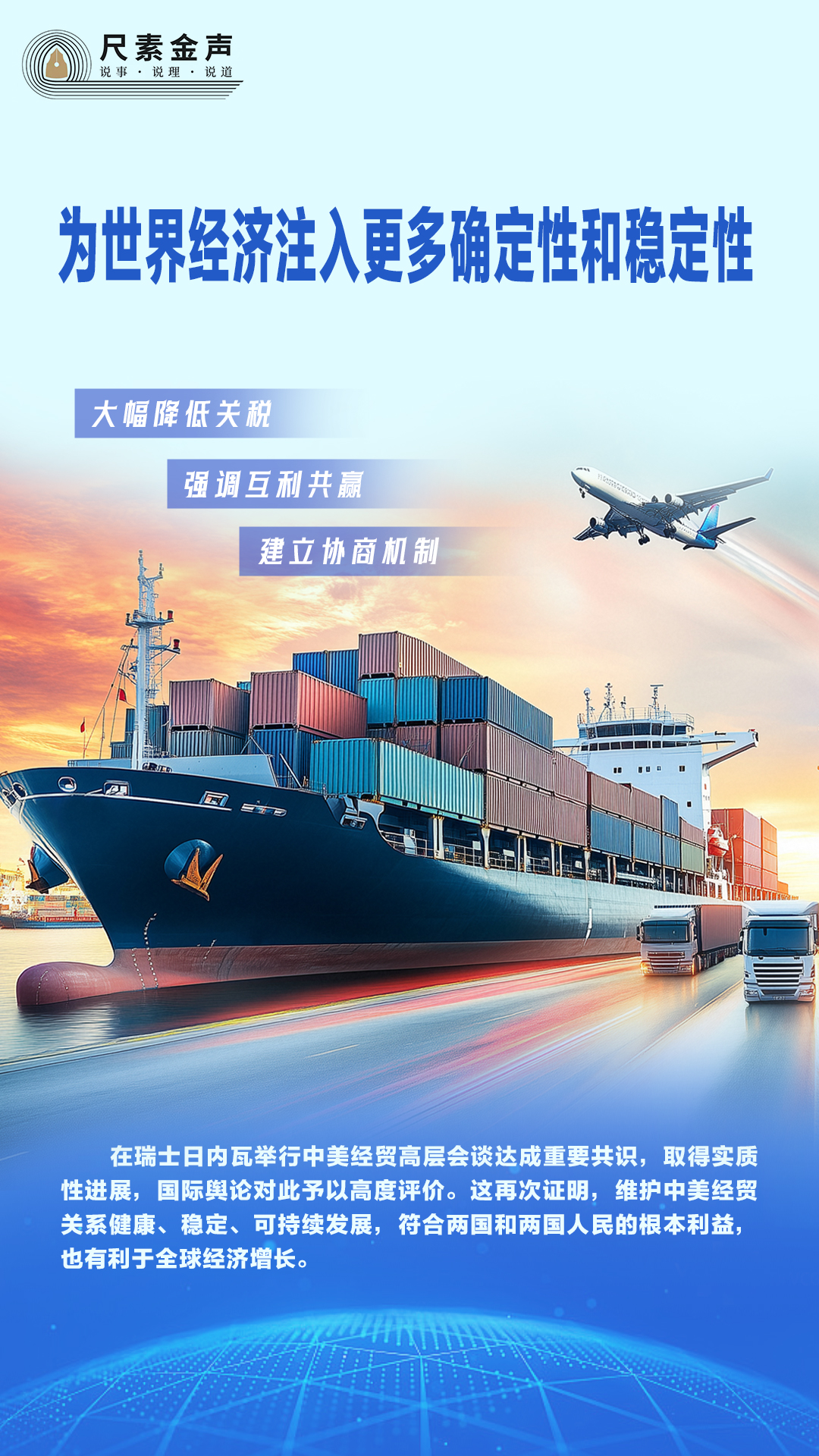在瑞士日內(nèi)瓦舉行中美經(jīng)貿(mào)高層會(huì)談達(dá)成重要共識,取得實(shí)質(zhì)性進(jìn)展,國際輿論對此予以高度評價(jià)。這再次證明,維護(hù)中美經(jīng)貿(mào)關(guān)系健康、穩(wěn)定、可持續(xù)發(fā)展,符合兩國和兩國人民的根本利益,也有利于全球經(jīng)濟(jì)增長。