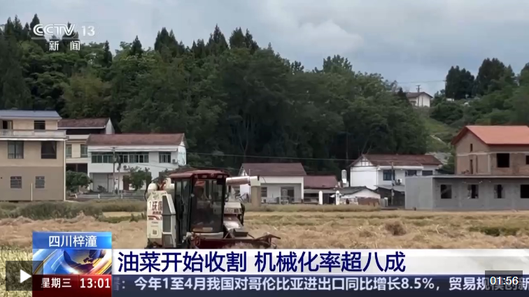 這幾天,四川綿陽梓潼縣油菜喜獲豐收,在文昌鎮(zhèn)龍口村一處農(nóng)業(yè)園區(qū),六臺聯(lián)合收割機(jī)來回穿梭,隨著收割機(jī)齒輪轉(zhuǎn)動,油菜稈被卷起送入收割臺,在這里完成收割、脫粒、分離、粉碎等工序,油菜果殼和油菜秸稈則被自動粉碎成末,均勻地拋灑在田間。脫粒的油菜籽被運(yùn)往烘干房進(jìn)行烘干,然后售賣或者用來榨油食用。據(jù)介紹,今年梓潼縣組織了1200多臺收割機(jī)幫助農(nóng)戶收割油菜,油菜機(jī)械化率超過八成,節(jié)約成本超過三成,預(yù)計本月底前可以完成收割。