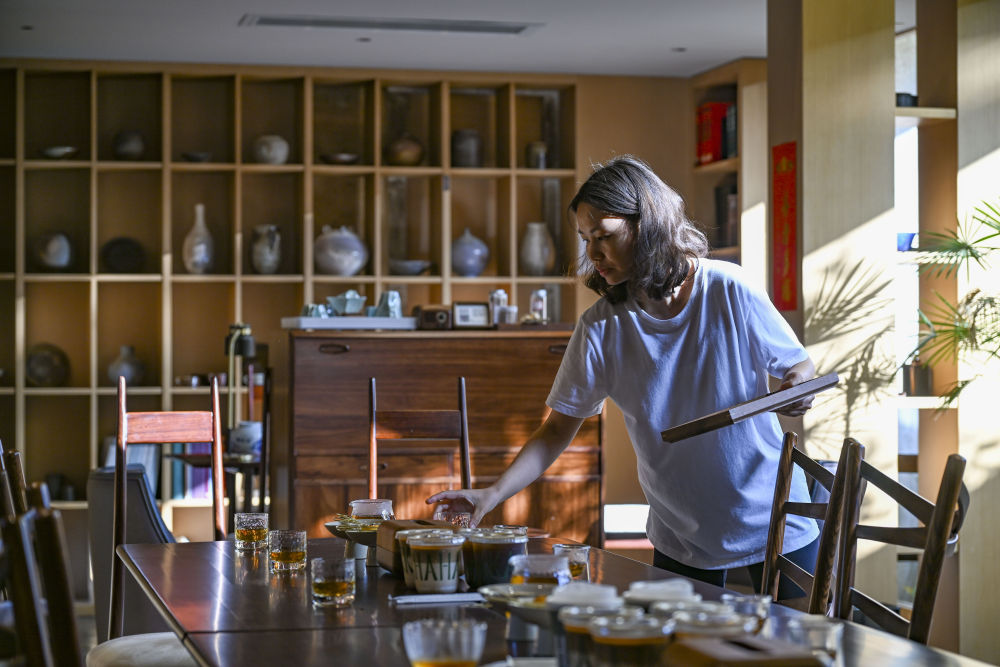 工作人員在長守戲劇谷內一家咖啡廳內布置