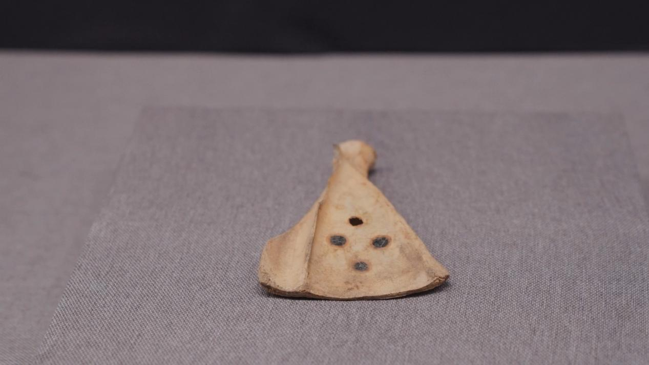 西域都護(hù)府博物館館長 唐羽嵐:卓爾庫特古城它出土的遺物,其中有一些非常的獨(dú)特,而且應(yīng)該說是全疆也是唯一性的,其中有三枚就是保存得非常完整,品相非常好的卜骨。