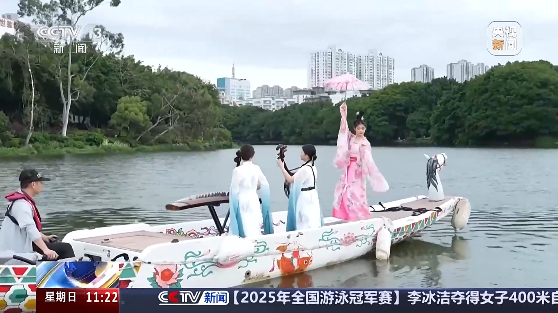 龍舟游船所過之處,碧波漾開層層翠影,古色古香的民俗表演,與兩岸的蔥蘢綠意相映成趣,給市民游客帶來一場(chǎng)唯美的感官盛宴。據(jù)統(tǒng)計(jì),2024年,福州內(nèi)河游累計(jì)接待游客超過38萬人次,成為當(dāng)?shù)匚穆媒?jīng)濟(jì)新的增長點(diǎn)?! ?/p>