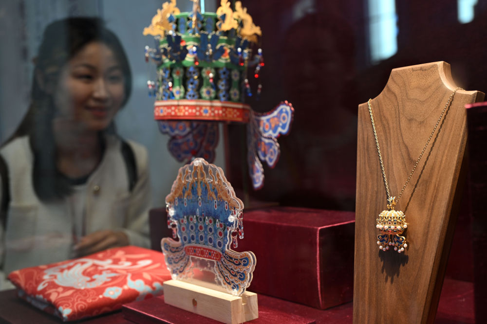 3月25日,觀眾在北京中國國家博物館選購鳳冠項(xiàng)鏈。新華社記者 金良快 攝