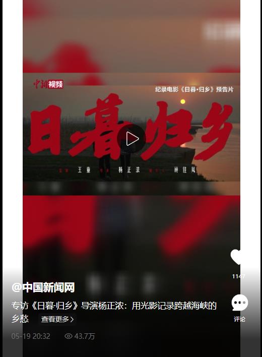 想家的人,終要回家。在楊正濃看來,《日暮·歸鄉(xiāng)》呈現(xiàn)的正是兩岸血濃于水的羈絆,而所有跨越山海與歲月的追尋,終能找到希望,尋到歸途。