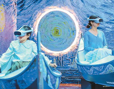 4月20日,游客在山東青島世博園XR梵高數(shù)字藝術(shù)體驗(yàn)館進(jìn)行數(shù)字產(chǎn)品體驗(yàn)。張 鷹攝(人民視覺(jué))