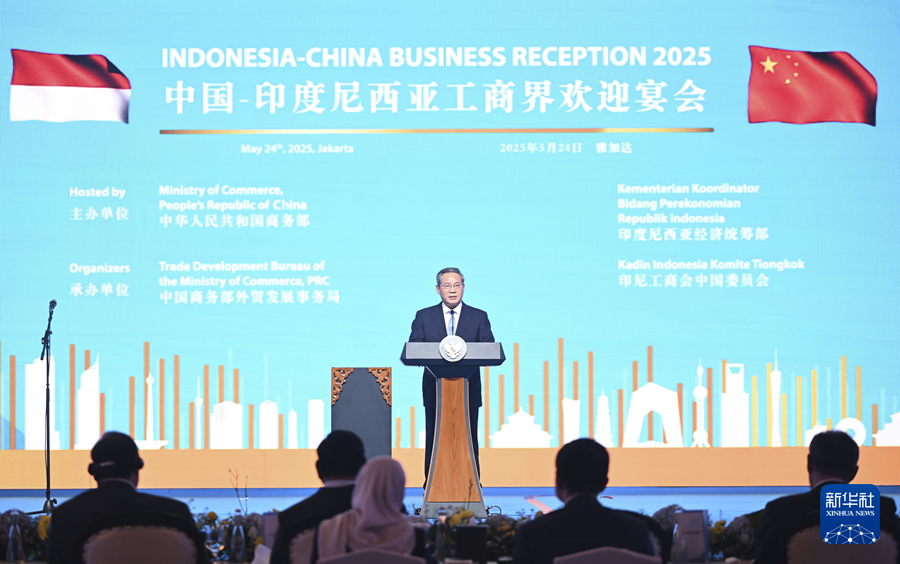 當(dāng)?shù)貢r間5月24日晚,國務(wù)院總理李強(qiáng)在雅加達(dá)同印度尼西亞總統(tǒng)普拉博沃共同出席中國-印尼工商界晚宴并致辭。新華社記者 李響 攝