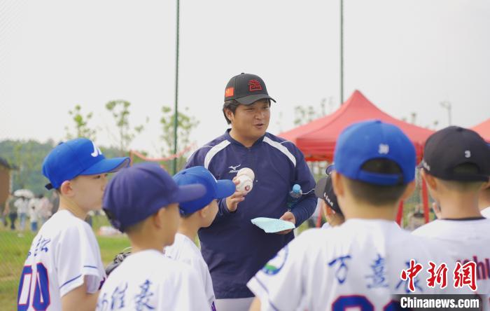 5月25日,在江西省南昌市的棒球場上,臺(tái)青吳軍平正在訓(xùn)練球員。吳敏 攝