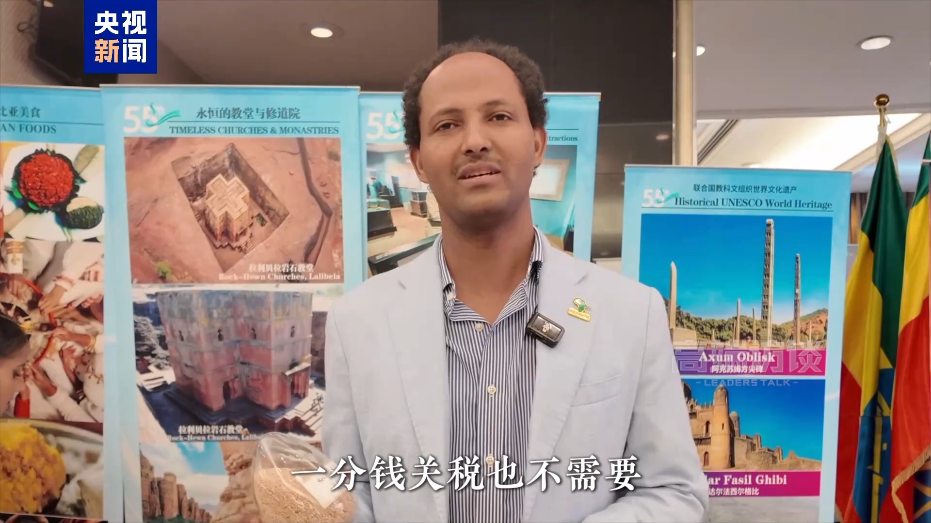 埃塞俄比亞駐華使館工作人員 內(nèi)比尤·博加勒:我們出口這些到中國市場不需要支付關(guān)稅,一分錢關(guān)稅也不需要。