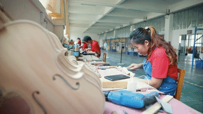 2015年以來(lái),確山縣“筑巢引鳳”,發(fā)展制琴產(chǎn)業(yè)。王金堂等60余名制琴師陸續(xù)返鄉(xiāng)創(chuàng)業(yè)。如今,全縣共有提琴生產(chǎn)企業(yè)144家,形成從木材處理、配件雕刻到油漆噴涂的完整產(chǎn)業(yè)鏈,年產(chǎn)值突破6億元,出口創(chuàng)匯超千萬(wàn)美元,帶動(dòng)了2600余人在家門口就業(yè)。