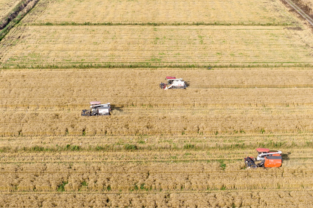 全國“三夏”大規(guī)模小麥機(jī)收全面展開。記者在河南、山東、浙江、江蘇等地看到,收割機(jī)開足馬力馳騁在麥田中,一排排小麥被整齊地切割、脫?!瓘V袤農(nóng)田一片繁忙景象。