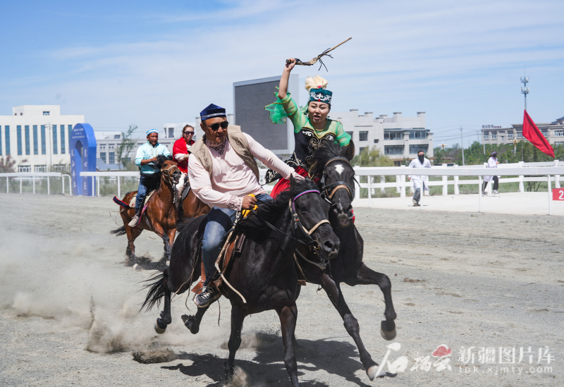 5月31日,中國·新疆第五屆駱駝產(chǎn)業(yè)展暨全疆賽馬大會在木壘哈薩克自治縣激情啟幕。活動現(xiàn)場在進行“姑娘追”表演。常誼誼 攝