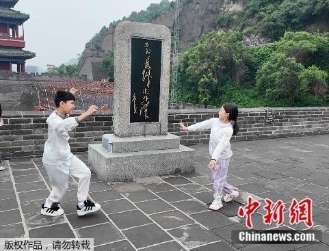 6月1日,來自新疆和田市的孩子們在居庸關(guān)長城。中新網(wǎng)記者 管娜 攝