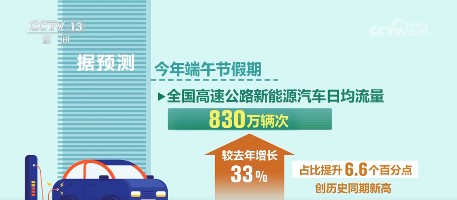 據(jù)預(yù)測(cè),今年端午假期,全國高速公路新能源汽車日均流量830萬輛次,較去年增長33%,占比提升6.6個(gè)百分點(diǎn),創(chuàng)歷史同期新高。各地推出的智能導(dǎo)航APP實(shí)時(shí)更新充電站點(diǎn)信息,部分服務(wù)區(qū)推出“潮汐充電”“移動(dòng)充電槍”等創(chuàng)新服務(wù),持續(xù)緩解車主續(xù)航焦慮。