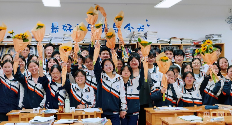 課堂上,除了有來(lái)自老師和同學(xué)們的祝福,還有一份特別的禮物。在前一天,學(xué)弟學(xué)妹們親手摘下了校園里種植的向日葵,送給即將畢業(yè)的學(xué)長(zhǎng)學(xué)姐,祝愿他們“向陽(yáng)而生”,未來(lái)一路生花。