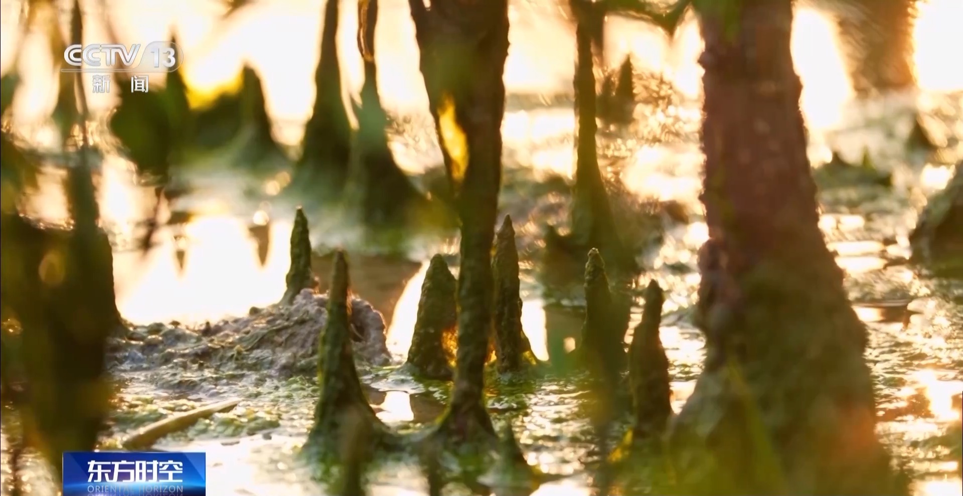 而在陸地與海洋交界處,有一種特殊的濕地類型,那就是被譽為“海岸衛(wèi)士”的紅樹林。在中國,它分布在廣東、廣西、福建、海南和浙江等沿海省份,是魚蝦、昆蟲、植物棲息的家園,也儲存大氣中多余的碳。劃定范圍、多樣修復、強化監(jiān)管,隨著紅樹林的系統(tǒng)保護在沿海省份有序展開,目前我國紅樹林面積已經(jīng)恢復增長至3萬多公頃,成為世界上少數(shù)紅樹林面積增長的國家之一。