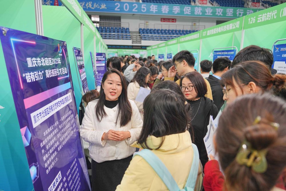 3月28日,西南大學(xué)應(yīng)屆畢業(yè)生在2025年春季促就業(yè)攻堅行動綜合類雙選會現(xiàn)場了解崗位信息。活動邀請裝備制造、新能源、數(shù)字信息、綠色化工、基礎(chǔ)教育、醫(yī)療衛(wèi)生等行業(yè)領(lǐng)域企業(yè)參與,為畢業(yè)生搭建廣闊多元的就業(yè)平臺。新華社發(fā)(秦廷富攝)