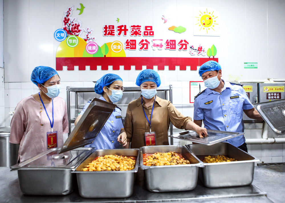 6月5日,在河南省焦作市博愛縣第一中學(xué),縣紀(jì)委監(jiān)委工作人員聯(lián)合市場監(jiān)管部門對考點食堂開展食品安全專項監(jiān)督檢查。新華社發(fā)(程全 攝)