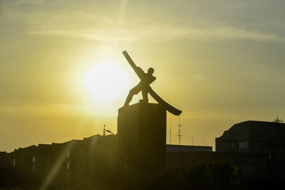 這是吉林市江城廣場上的搖櫓人雕像。新華社記者 顏麟蘊(yùn) 攝